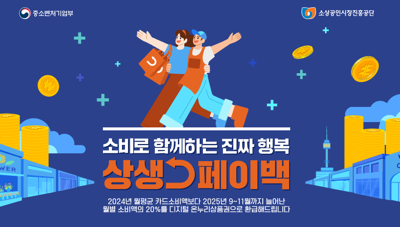 - 지원 내용: 2024년 월평균 카드사용액 대비 2025년 9월~11월 소비 증가분의 20%를 환급해 줍니다.
