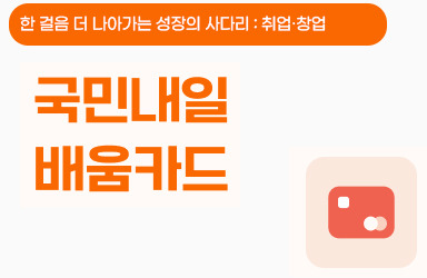 - 국민내일배움카드 새로운 기술을 배우거나 직무 역량을 강화하고 싶을 때, 훈련비의 상당 부분을 지원받을 수 있습니다.